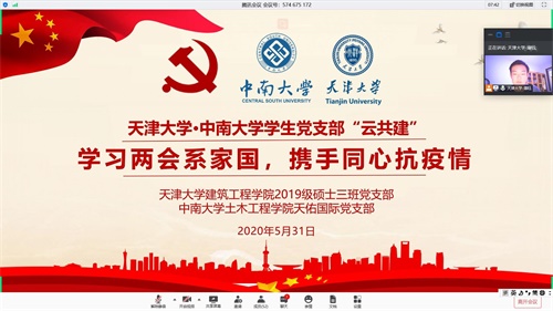 学习两会系家国,携手同心抗疫情——yl23411永利集团与天津大学建筑工程学院举行联合云党日活动