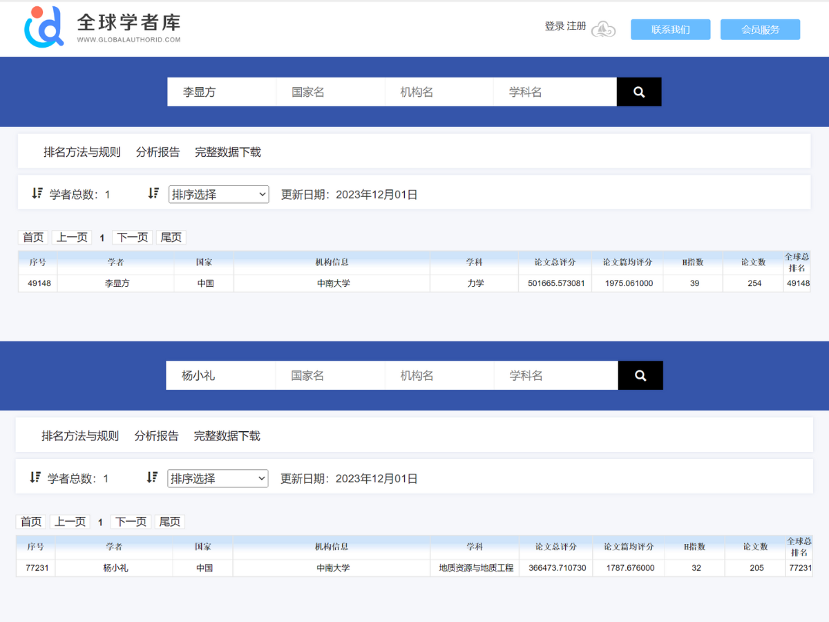 我院李显方教授、杨小礼教授入选2023全球学者终身学术影响力榜
