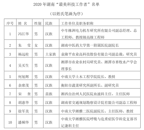 我院何旭辉教授荣获2020年湖南“最美科技工作者”称号