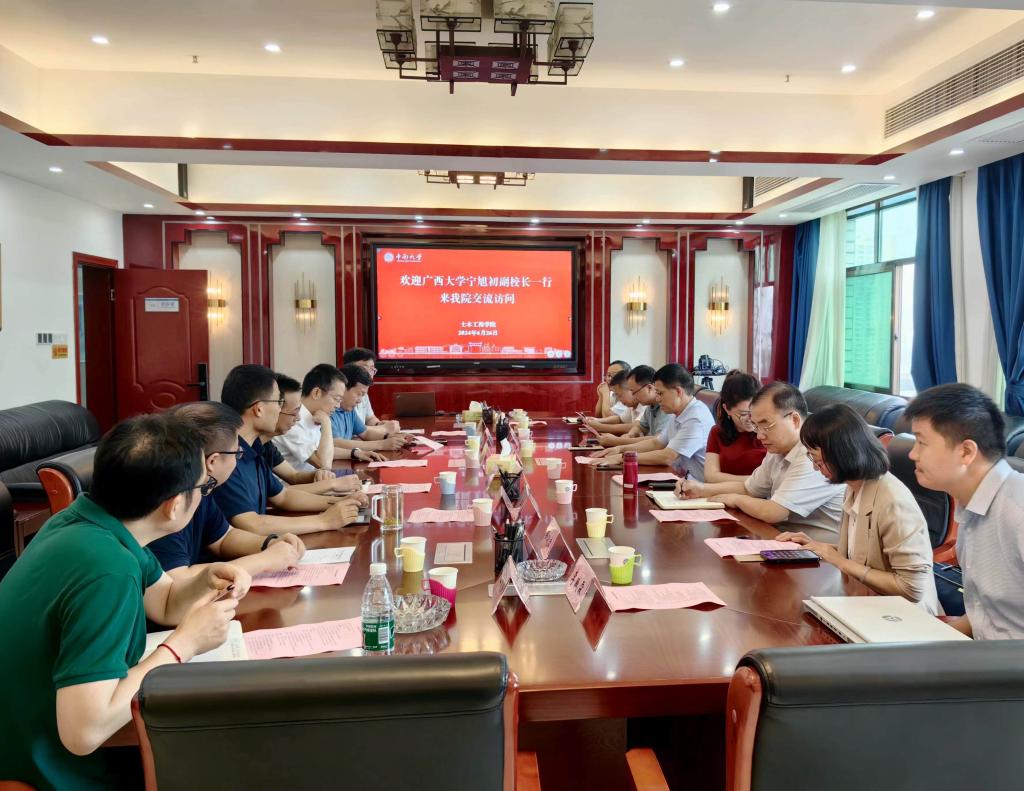 李磊代表学院对宁旭初一行的到来表示热烈欢迎。宁旭初介绍了广西大学土木工程学科建设现状以及实验室建设规划。国巍教授、高速铁路抗风研究所所长王汉封教授分别介绍振动台项目、边界层风洞项目的可行性论证、土建设计、招标采购、施工、验收、运维、管理等具体情况。双方就实验室管理、学科建设、人才培养等方面进行了深入交流,期待今后进一步加强合作。