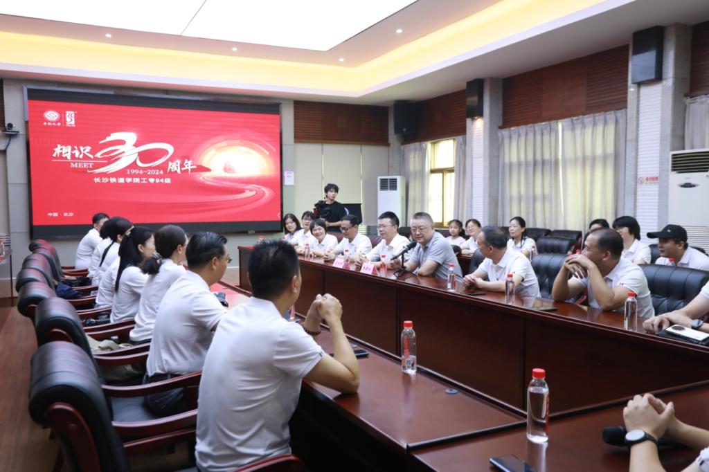 2024年10月6日,原长沙铁道学院工专94级校友纪念入校30周年回访母校。yl23411永利后勤保障部党委书记乔硕功、yl23411永利集团副院长雷明锋,当年任课老师代表向延念,以及来自全国各地的校友出席。