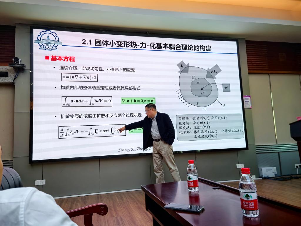报告结束后,仲政教授非常热情的同各位学生老师进行讨论交流,学术氛围十分浓厚。为校内教师和仲政教授团队之间的深入合作奠定了基础。未来,各方有望在力化学耦合理论的实际应用和学术资源共享等方面展开合作,以促进该理论在工程实践中的推广和应用。