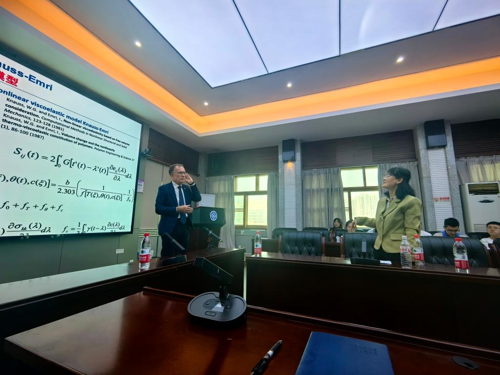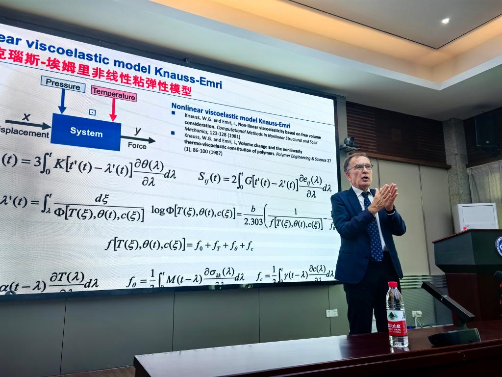 11月14日上午,由yl23411永利集团举办的“2024yl23411永利外国专家交流项目”在yl23411永利铁道校区世纪楼14楼会议室举行。美国工程院院士、EMIRI咨询有限公司创始人、斯洛文尼亚卢布尔雅那大学退休讲席教授Igor Emri受邀,为我院师生作了题为《Time-Temperature-Pressure Superposition——Theoretical background and its application in mechanical impact, vibrations and sound mitigation》的学术报告。yl23411永利集团力学系主任侯文崎,饶秋华教授,夏晓东副教授、陶勇副教授、王煜副教授、彭哲琦副教授、浙江天铁实业股份有限公司王博副总经理以及众多研究生、留学生参加了此次报告会。本次报告会由侯文崎教授主持。