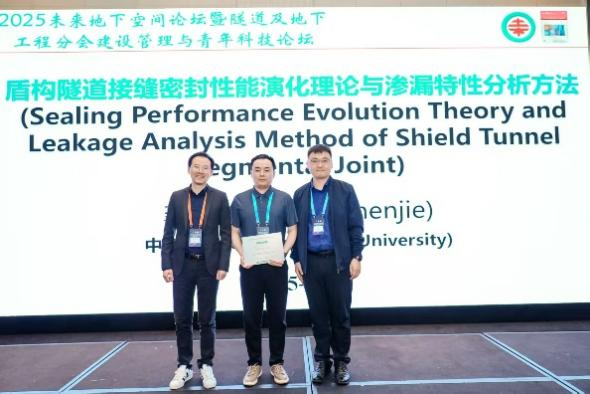 会议期间,我院参会教师在2025未来地下空间论坛不同会场进行了多场学术汇报。其中,论坛组织委员会共同主席雷明锋教授作了题为“钻爆法隧道高效智能爆破控制技术与系统”的特邀报告,论坛组织委员会共同副主席傅金阳教授作了题为“小断面隧洞全景图像快速采集与病害识别技术”报告,论坛组织委员会委员龚琛杰副教授作了题为“Sealing Performance Evolution Theory and Leakage Analysis Method of Shield Tunnel Segmental Joint”的英文学术报告。