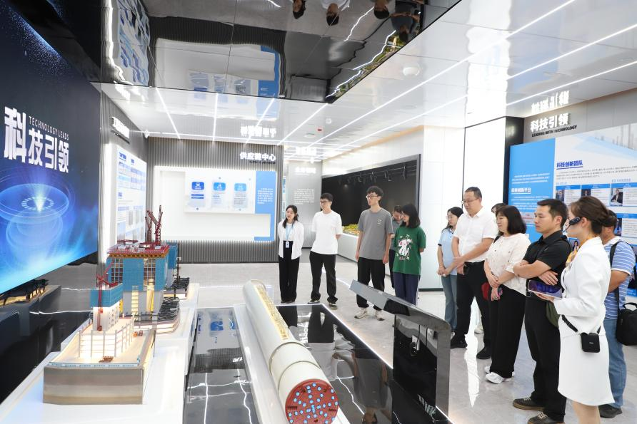 7月22日上午,师生们参观了中建科创大厦,深入了解了集科技与绿色理念于一体的标杆建筑的诞生过程及其示范意义。随后走进了中建四局企业创新中心,其以打造零碳建筑为目标的创新实践,生动诠释了建筑业可持续发展的前沿方向。