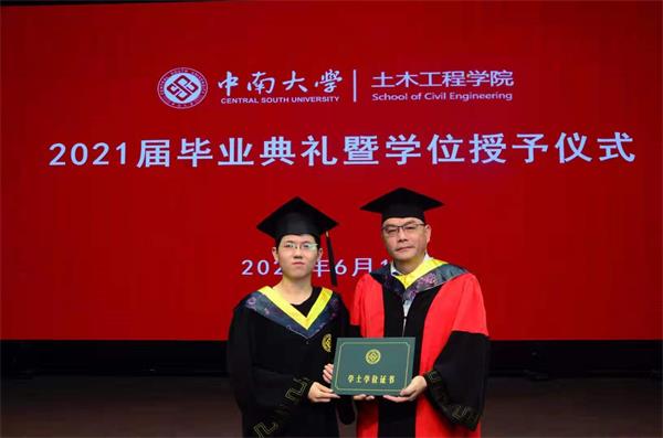 何旭辉院长作了题为“以梦想激荡梦想,从现在照亮未来”的毕业致辞。他对2021届全体本科毕业生顺利毕业表示热烈的祝贺,向全院教职员工表示衷心的感谢。他指出,恰逢建党百年,一百年风雨兼程,一百年沧桑巨变,世界人民见证了中华民族的崛起。在湖南这片红色土地的浸润下,中南土木学子真正做到了个人成长与社会国家成长的结合,发扬着“吃的苦,霸的蛮,耐的烦”的湖南精神。他希望,同学们记住大学里的满怀抱负和一腔孤勇,学着续写中南土木前辈们的故事,做到传承土木精神、传承土木智慧、传承土木情怀,毕业后继续关心、关注母校,努力为母校的发展添砖加瓦、献计献策,在时代发展搏击中与中南共成长。