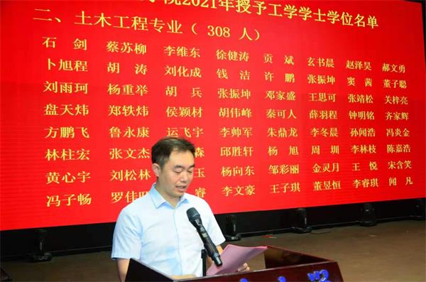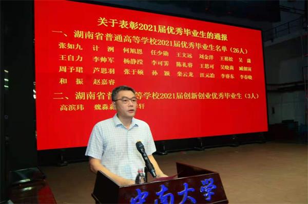 蒋琦玮书记宣读了2021届湖南省优秀本科毕业生名单、2021届yl23411永利优秀本科毕业生名单。