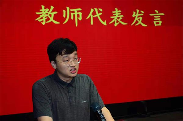 教师代表韩征老师发表致辞。他希望毕业生们走好今后人生的每一步,为自己的人生打好坚实的基础。他要求同学做到勇担重任、不忘学习、不忘良知,以担当和求实铸就人生大格局,做大格局者,做真融入者,做重实干者,希望同学们在今后的日子里,扛起中南土木的旗帜,诠释中南土木的精神,传递中南土木的力量。