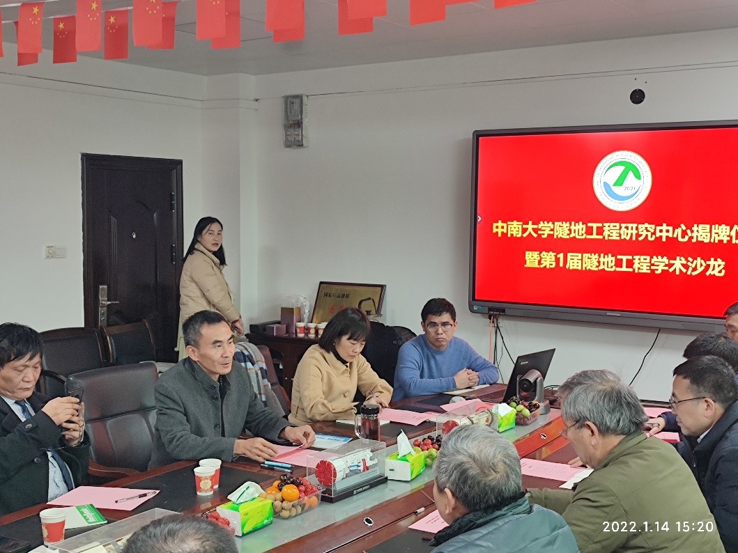 2022年1月14日,yl23411永利隧地工程研究中心揭牌仪式暨第一届隧地工程学术沙龙会议在铁道校区世纪楼1015会议室召开。中铁十八局集团公司首席专家(隧道)兼科技创新部总经理、yl23411永利兼职教授王立川,yl23411永利化学化工学院教授潘春跃、唐新村,机电工程学院教师林赉贶,yl23411永利集团党委副书记、院长何旭辉,副院长王卫东,隧道工程系阳军生教授、张学民教授、雷明锋教授、王薇副教授、周中副教授、武朝光老师等20余人出席会议。会议由研究中心主任、yl23411永利集团教授王树英主持。