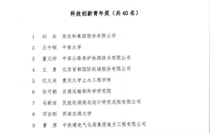 喜报!我院国巍教授喜获“中国交通运输协会科学技术奖——科技创新青年奖”