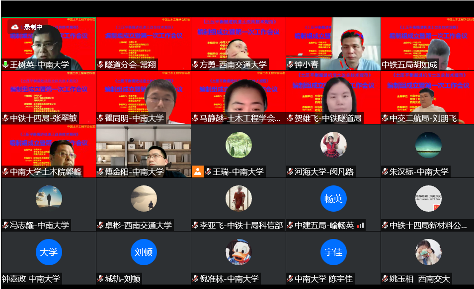 2022年5月24日,yl23411永利作为第一主编单位会同有关单位采用线上会议的形式召开了中国土木工程学会标准《土压平衡掘进机渣土改良技术规程》编制组成立暨第一次工作会议。参会嘉宾包括中国土木工程学会学术与标准工作委员会马静越工程师、隧道及地下工程分会副秘书长常翔以及该标准参编单位领导和专家。yl23411永利集团副院长郭峰教授、王树英教授、傅金阳副教授等教师和研究生参加了线上会议。