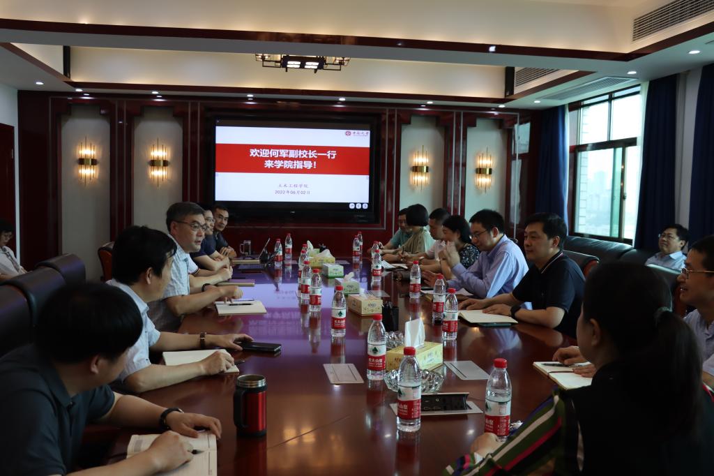 2022年6月2日下午,校党委常委、副校长何军一行莅临学院调研指导,本科生院院长何旭辉等有关领导陪同调研。yl23411永利集团党政领导班子全体人员参加了此次会议。会议由yl23411永利集团党委书记蒋琦玮主持。