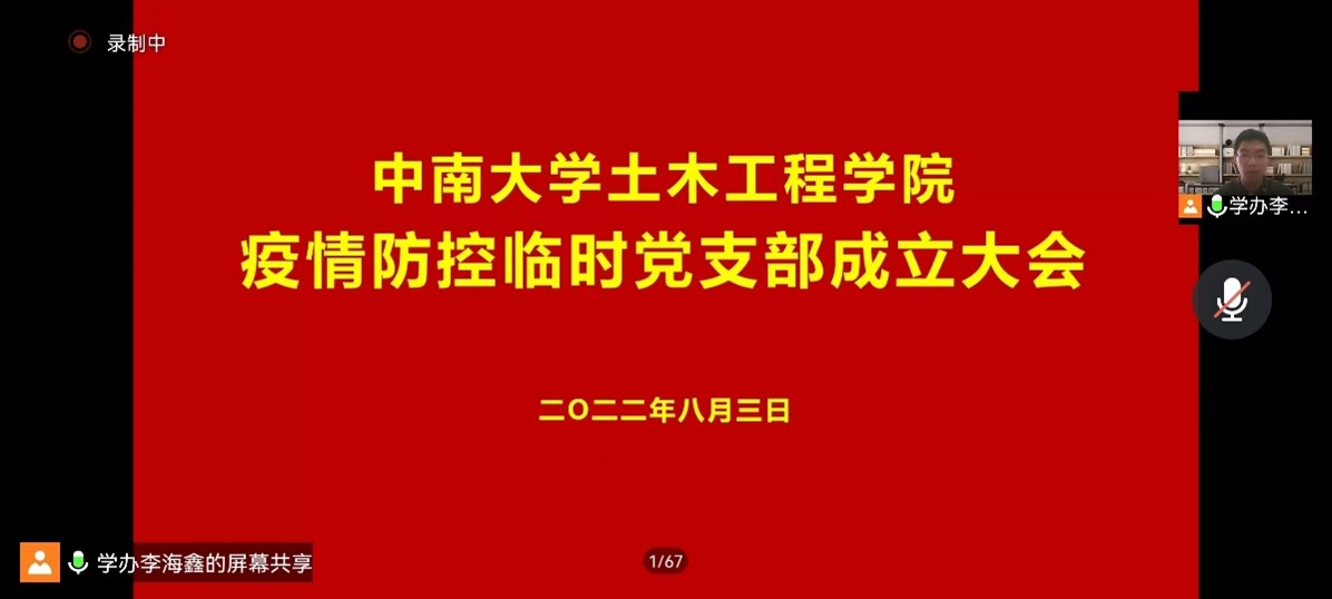 在校学生疫情防控临时党支部学生副书记任振彬同学发言表示,这场疫情抗击战是我们师生共同的责任和任务,关乎着全校师生的身体健康。疫情防疫志愿者招募时,大家积极踊跃的态度让我热血澎湃并为之感动,我为自己身边有这样一群有责任、有担当的同志而感到骄傲。我作为学生党员,更要以身作则,成为学校打赢、打好疫情这场硬仗的先锋战士,让党旗在抗疫前线高高飘扬,让“我是党员我先上”成为土木院抗疫中最鲜艳的旗帜。