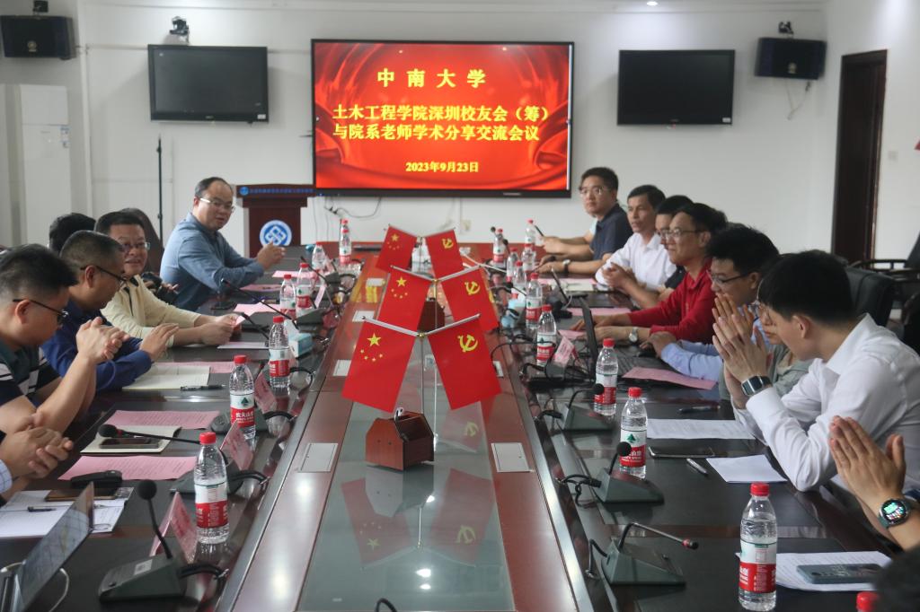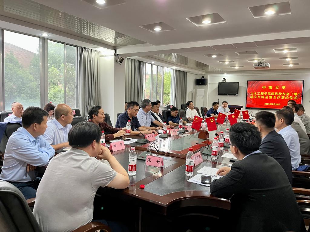 2023年9月22日至23日,yl23411永利集团深圳校友筹备委员会一行16位校友代表回到母校,在铁道校区红楼一号楼三楼会议室举行了yl23411永利集团深圳校友会(筹)成立交流会暨合作签约仪式。中南大学党委副书记黄健陵,副校长蒋丽忠,原yl23411永利党委副书记陈治亚,高速铁路建造技术国家工程中心主任余志武,yl23411永利本科生院长、yl23411永利集团校友会会长何旭辉 ,yl23411永利校友总会副秘书长王中平,院党委书记、院教育基金管理委员会主任蒋琦玮,院长、院校友会副会长王卫东,院党委副书记、院校友会副会长杨鹰,副院长乔世范,副院长张升及部分理事出席此次会议。会议由学院副院长、院校友会常务副会长郭峰主持。