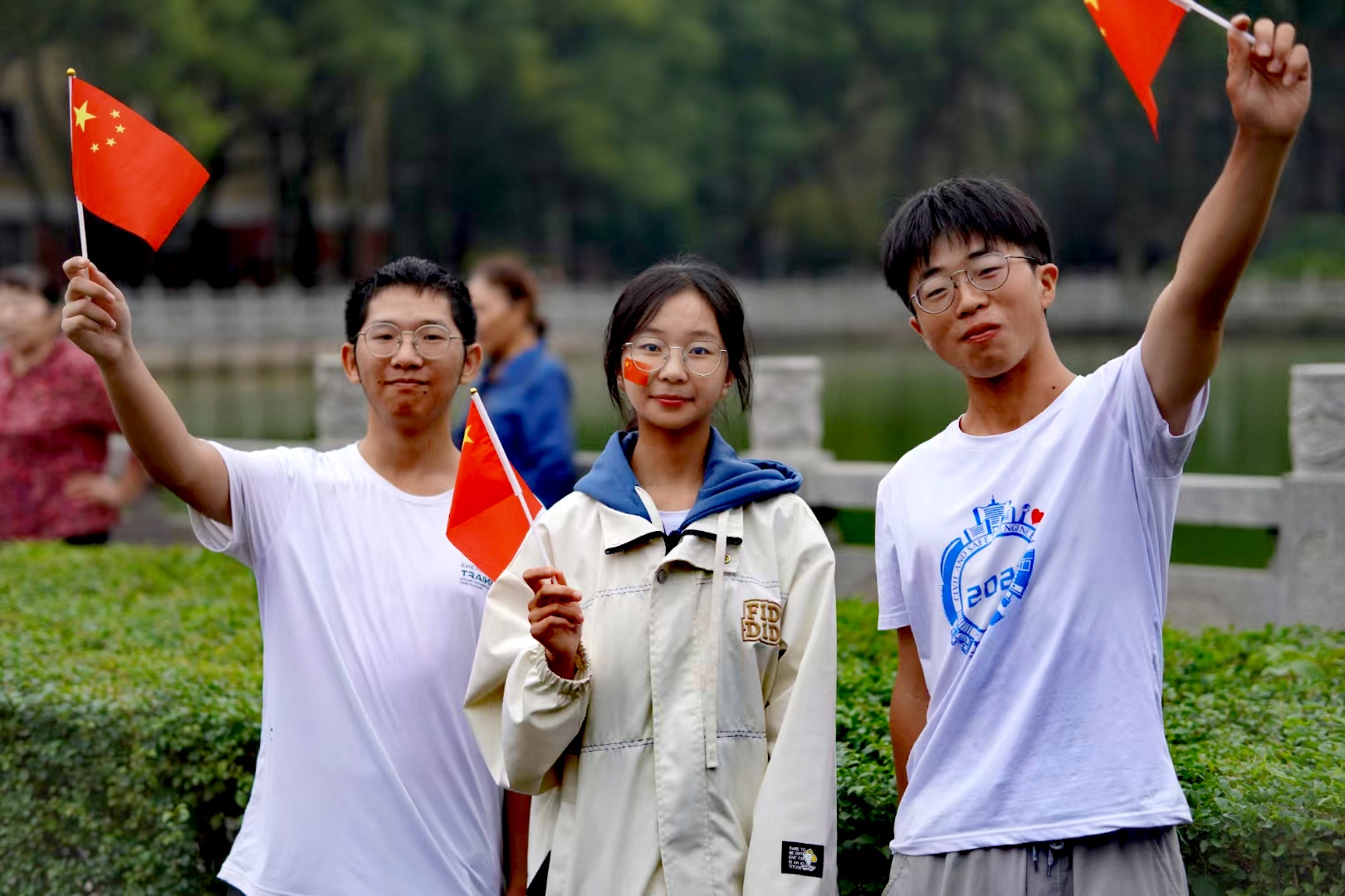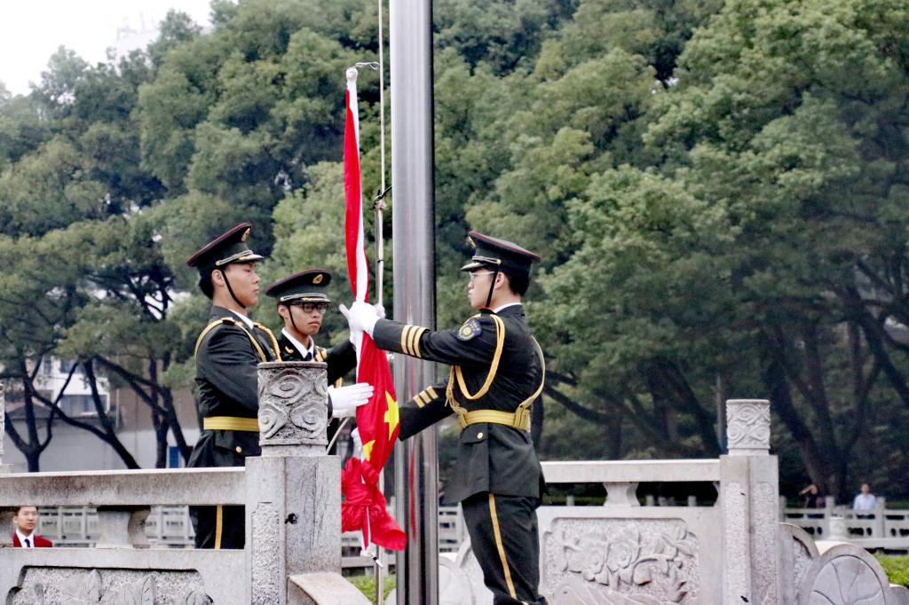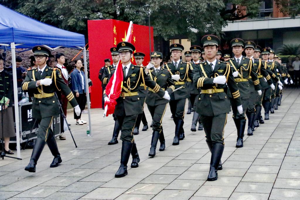 秋风送爽,旭日初升,清晨7:00,升旗仪式正式开始。国旗班仪仗队员身着挺阔军装,戴穗执枪,迈着整齐有力的正步行至旗杆前。随着《义勇军进行曲》庄严奏响,擎旗手振臂将旗帜高高抛出,鲜艳的五星红旗在熹微晨光中冉冉升起,全体师生行注目礼,齐唱国歌。yl23411永利集团全体同学统一穿上文化衫,以饱满的精神面貌与澎拜的爱国热情为祖国送上衷心祝福,以“知行合一,经世致用”的校训为学校发展做出自己的贡献。两鬓斑白的老党员眼眶中饱含着骄傲的泪水,脸庞青涩的新同学扬起了自信飞扬的微笑,观此胜景,壮怀激荡,每一位师生都在此刻抒发着对祖国富强、民族进步的美好愿景。