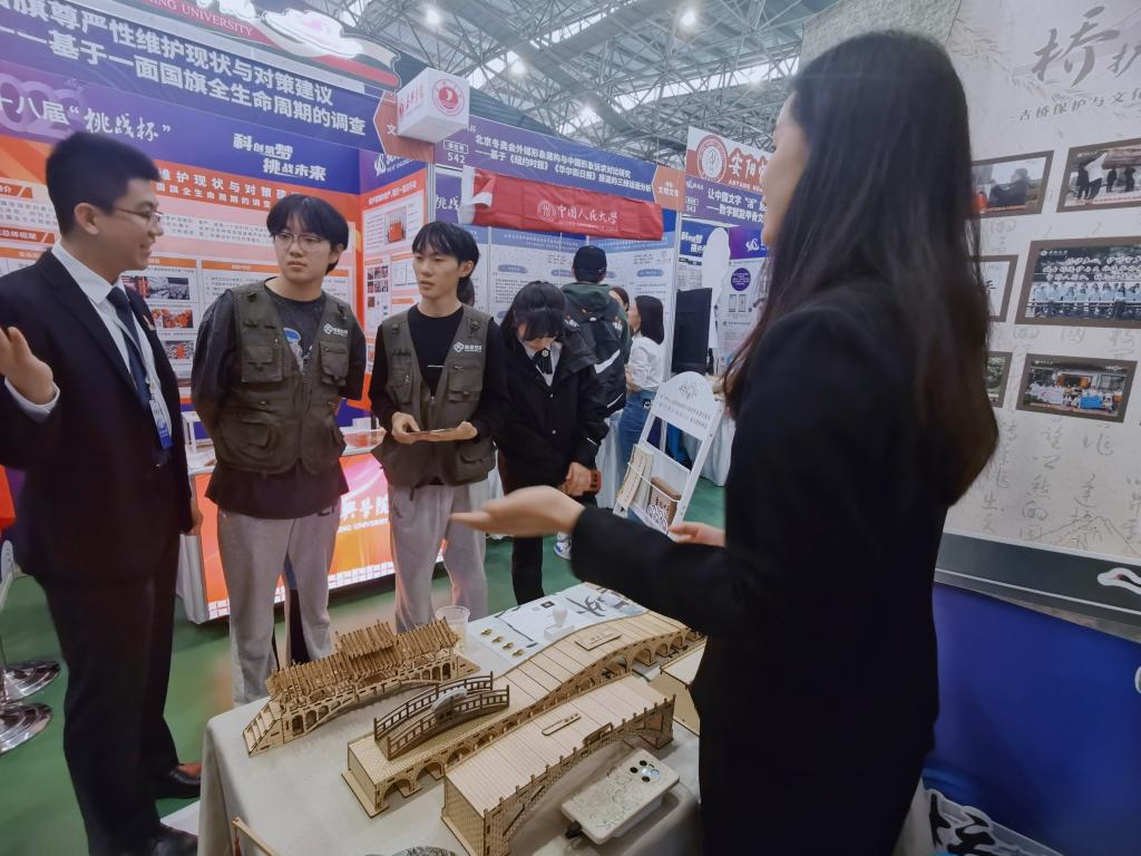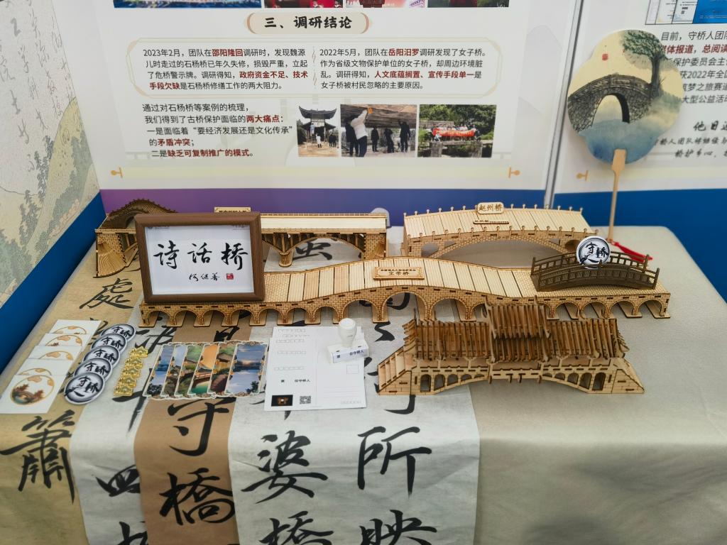 《桥护乡心:古桥发展现状与保护传承路径探究 --基于13省24市(县)111座古桥的调查》项目由我校何旭辉、杨雨、唐苗等老师指导,王文博、兰佳莉、李俊茹、刘思含、刘弘毅、薛佳、李冰冰、陈紫榭、裴子鋆、毛远影、夏琰等同学同学共同参与,项目团队抓住古桥面临的两大痛点,提出了“护桥+守乡”的“3+3”保护传承模式——“以建模—监测—新材料”三位一体的护桥计划,解决经济压力;以“挖掘—宣传—再创造”三位一体的守乡计划,促进文化传承,在本届赛事中得到评委的一致认可,从主体赛1745件全国各高校作品中脱颖而出,获全国一等奖。五年来,“守桥人”团队积极响应习近平总书记关于保护古桥文物的号召,共计跋涉8万公里,走访13省117座古桥,深入探究古桥现存的问题,以新工科赋能新文科,以学科交叉助力乡村振兴,引领广大青年扎根祖国大地,为中国古桥保护贡献新时代青年的青春力量。