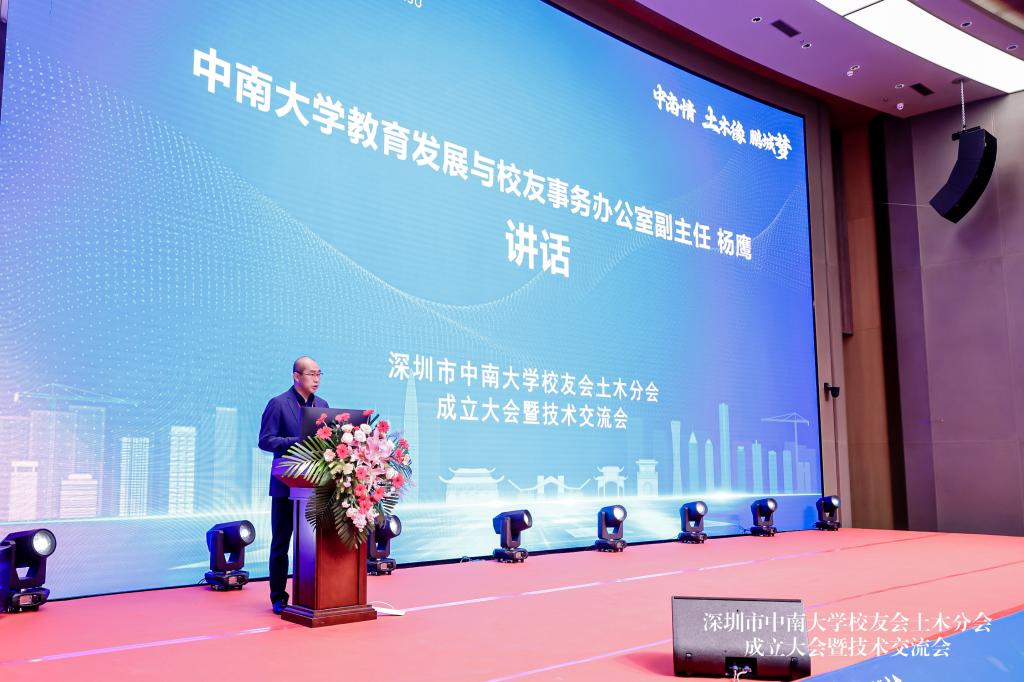 深圳市yl23411永利校友会执行会长汤伟玲在讲话中提到深圳以其勇于创新、追求卓越的精神而闻名于世,中南校友在土木工程领域有着丰富的经验和专业知识,土木分会的建立将更大的发挥我们的优势,为深圳的城市建设贡献我们的力量。