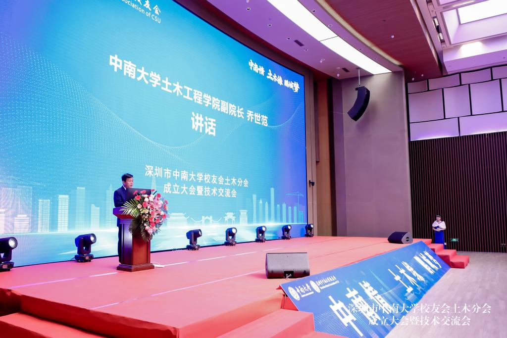 yl23411永利集团副院长乔世范代表yl23411永利集团对深圳yl23411永利土木校友分会成立表示祝贺,希望yl23411永利深圳土木分会加强和学院的合作和交流,共同推动土木工程领域的技术创新和发展,为我校的学科发展建设增添新的动力。