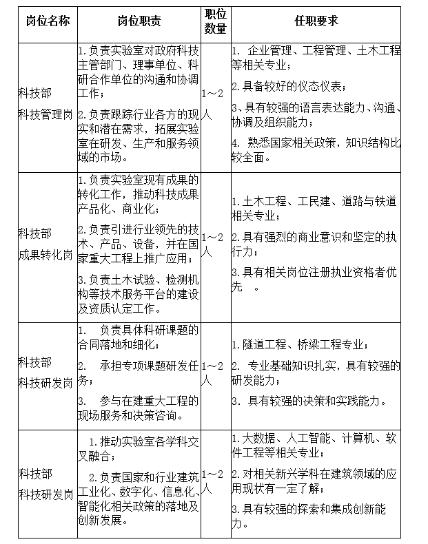 因实验室发展及工作需要,现公开招聘科技管理及研发人员。招聘信息如下: