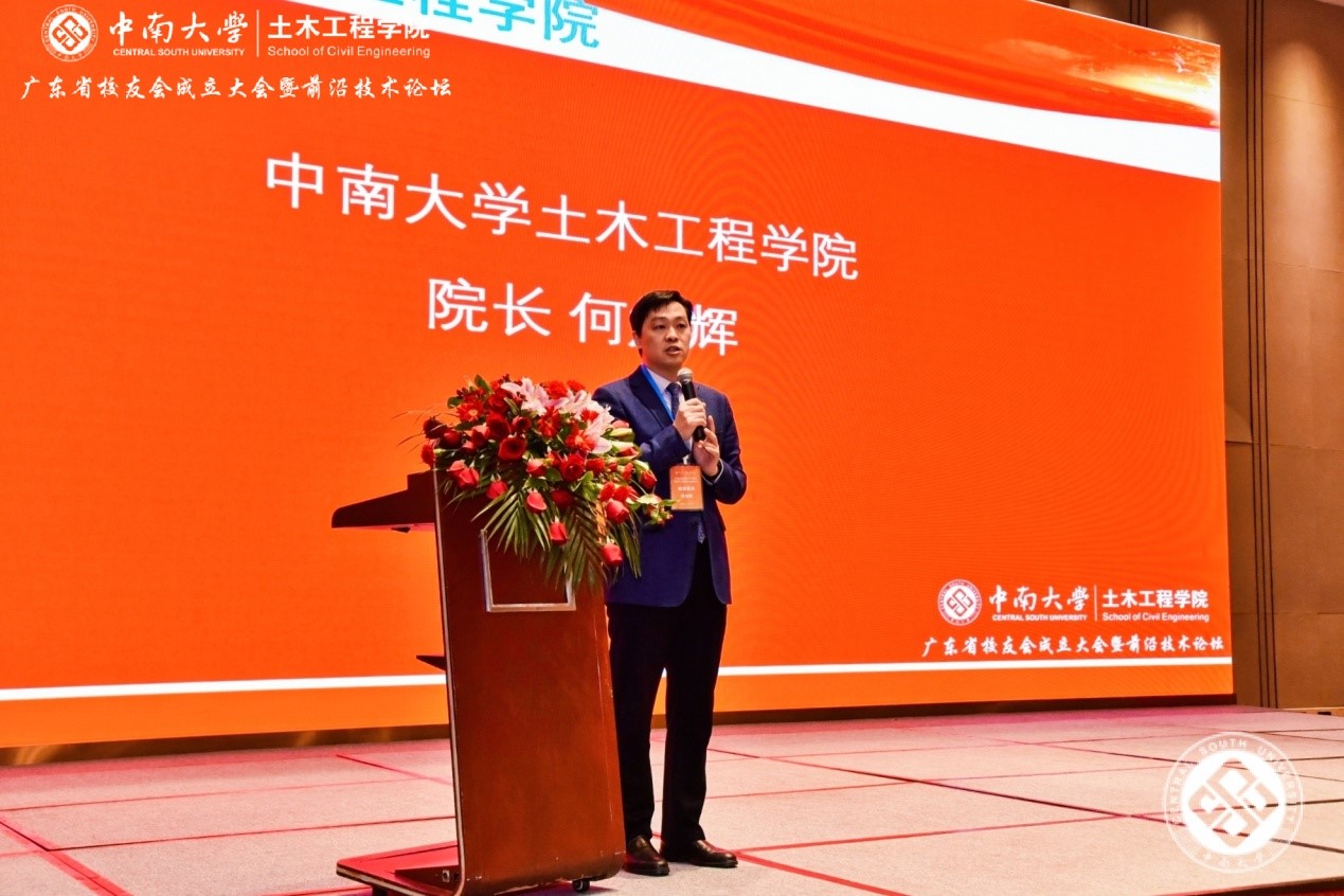 我院院长、院校友会会长何旭辉发表讲话。他高度赞扬广东校友在区域经济发展中担负着重要的角色,为学校赢得了的荣誉。他回顾了中南土木的发展历程,分享了合并后yl23411永利的辉煌成就。希望广东土木校友会进一步发挥校友会的桥梁、纽带、平台和资源作用,在全国省级土木校友会中起到示范作用,为母校争取更大的荣光。