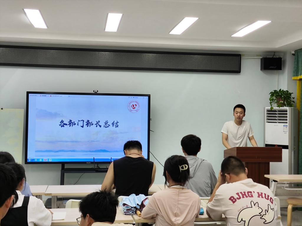 会议伊始,各部长依次介绍各部门过去一年的整体工作情况。活动部部长梁铭实总结了活动的举办情况,并指出过去一年在人员调动和活动创新方面的欠缺。宣传部部长买耕硕侧重强调心助会不是活动会,应注重在日常工作中建设良好的团队。并提出将“心随想”的征文活动推广到各年级的建议。办公室部长李振芳和培训部部长唐婕则分别从各自部门内部出发,详细介绍了部门内部的工作流程、团队合作情况以及遇到的困难和挑战。