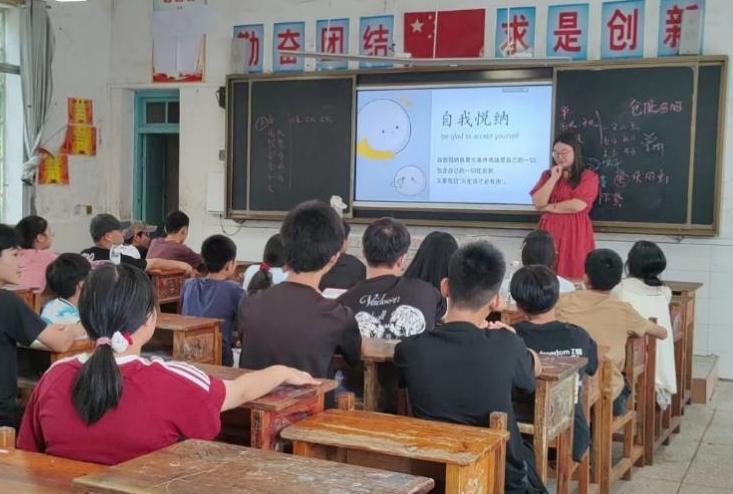图为支教团成员卢萍进行心理健康教育课教学