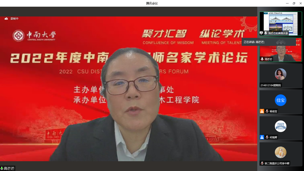 本次线上讲座,高芒芒教授以丰富的铁路桥梁从业经验为基础,从高铁大跨桥面临的问题和挑战、铁路大跨度桥梁刚度控制标准、大跨度桥梁纵断面和预拱度设置原则、大跨桥轨道长波不平顺静态验收标准、大跨度桥梁线形验收标准和桥上有砟线路运维标准六个方面来做详细讲解。