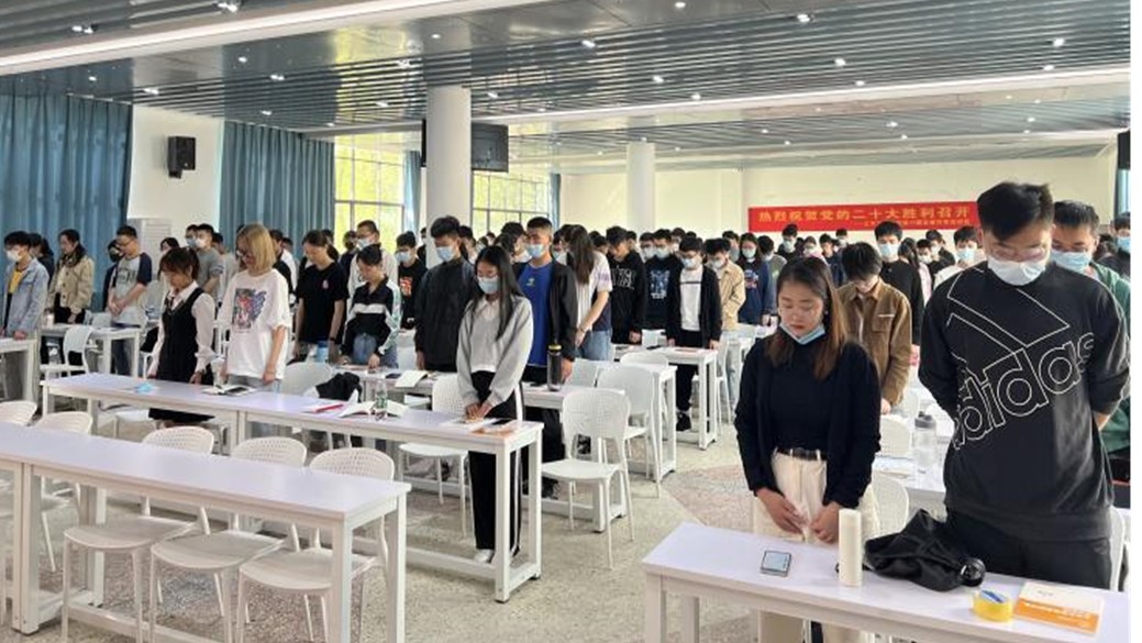 上午10:00,中国共产党第二十次全国代表大会正式开幕,培训班学员全体起立,高唱国歌,随后,全体成员收看学习了习近平总书记代表党的第十九届中央委员会向中国共产党第二十次全国代表大会所作报告。