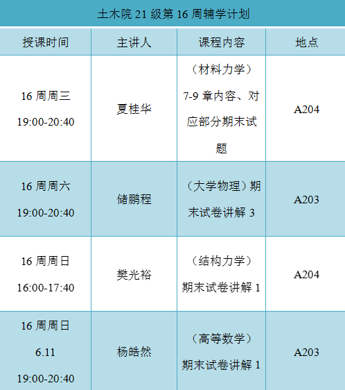 本次辅学活动的15名义工均来自于2021级学习前列、综合素质拔尖学生,针对高等数学、结构力学、材料力学、大学物理历年期末真题、章节框架知识,边归纳总结、边练习检验,通过分析往年科目考试情况以及题型分数分布,以讲解讲透知识点为主,细致演练公式的推导和运用,适当结合书本例题和课后习题,全方位为困难学生解决难题。