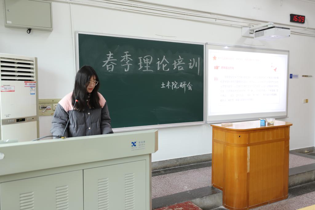 第一阶段,研究生会文艺部部长王家立紧紧围绕党的二十大精神,以《学思践悟二十大,砥砺奋进新征程》为题主持研究生会成员回顾了党的二十大报告的主要内容。他表示,作为研究生会学生干部,要有青年的历史责任感和使命感,要以中华民族伟大复兴而不断奋斗。