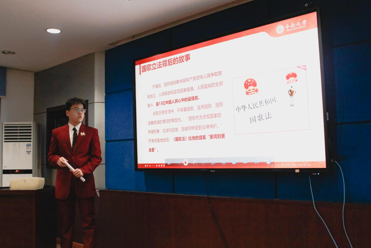 首先,由yl23411永利集团学生代表梁雨豪带领yl23411永利集团国歌领唱团成员深入学习国歌法相关知识,分别从国歌和国歌法的由来、《国歌法》立法背后的故事、《国歌法》的内容及解读、《国歌法》的意义等方面对国歌法进行了全面的解读,希望同学们能够理解《中华人民国歌法》的重要性,严格遵守并付之行动。活动中同学们踊跃提问,认真学习,在随后的法律常识问答中举手踊跃发言。活动中同学们踊跃提问,认真学习,在随后的法律常识问答中举手踊跃发言,充分展现了大学生对遵守《国歌法》的责任与担当。