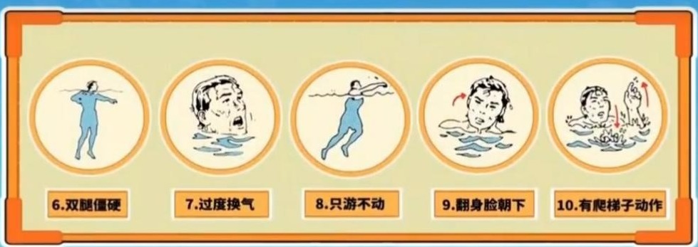 (5)保存体力。会游泳者在落水自救的过程中,应注意防止"抽筋",并保存体力。