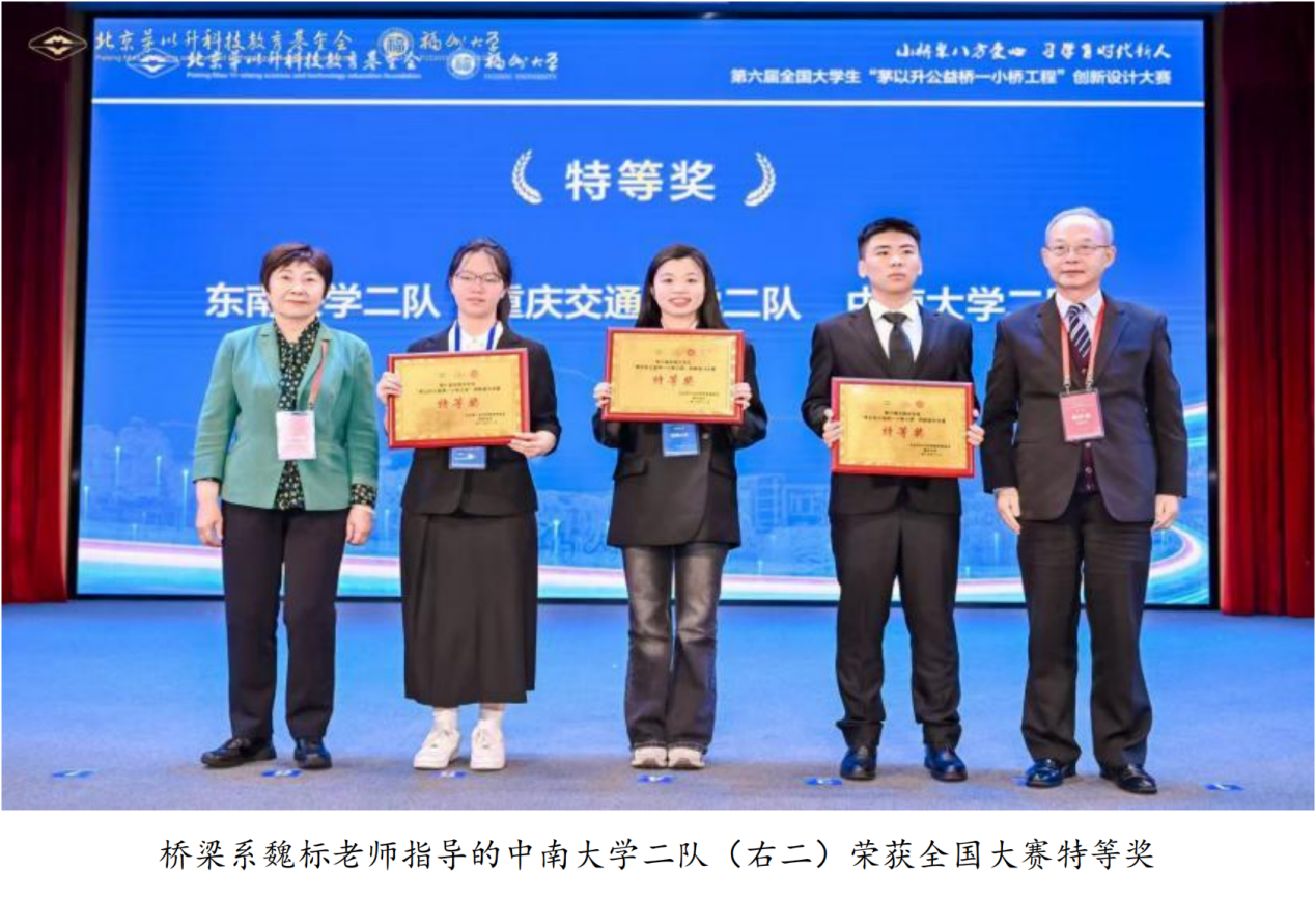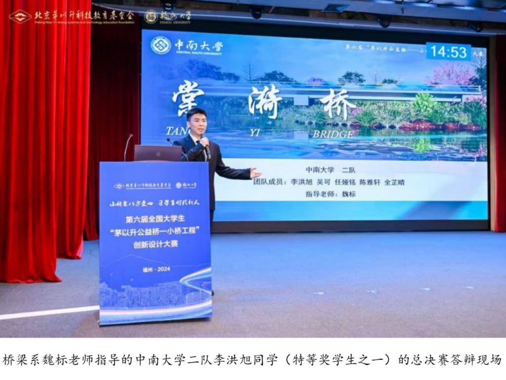 大赛介绍:第六届全国大学生“茅以升公益桥——小桥工程”创新设计大赛,由北京茅以升科技教育基金会、福州大学联合主办,由教育部高等学校交通运输类专业教学指导委员会、教育部高等学校土木类专业教学指导委员会支持,福州大学yl23411永利集团承办。本赛事旨在践行茅以升先生“先习后学,边习边学”的工程教育思想,以实际工程项目设计为载体,通过实践教育提高人才培养水平、为乡村振兴汇聚青春力量。本次比赛分为初赛、小组决赛和总决赛三个阶段,总历时5个多月。初赛于今年10月份完成,遴选了包括清华大学、同济大学、yl23411永利等37所高校60支队伍入围决赛。决赛由高宗余院士担任专家评委会主任,评委由杨永斌院士、高宗余院士及长江、杰青、勘察设计大师等组成。决赛分为小组决赛(共4组)和总决赛两个环节,小组决赛每组15支队伍中3-4名为二等奖、5-7名为三等奖,每小组1-2名进入总决赛,最终角逐特等奖(共3名)和一等奖(共5名)。下一届“茅以升公益桥—小桥工程”创新设计大赛,将由北京交通大学承办。