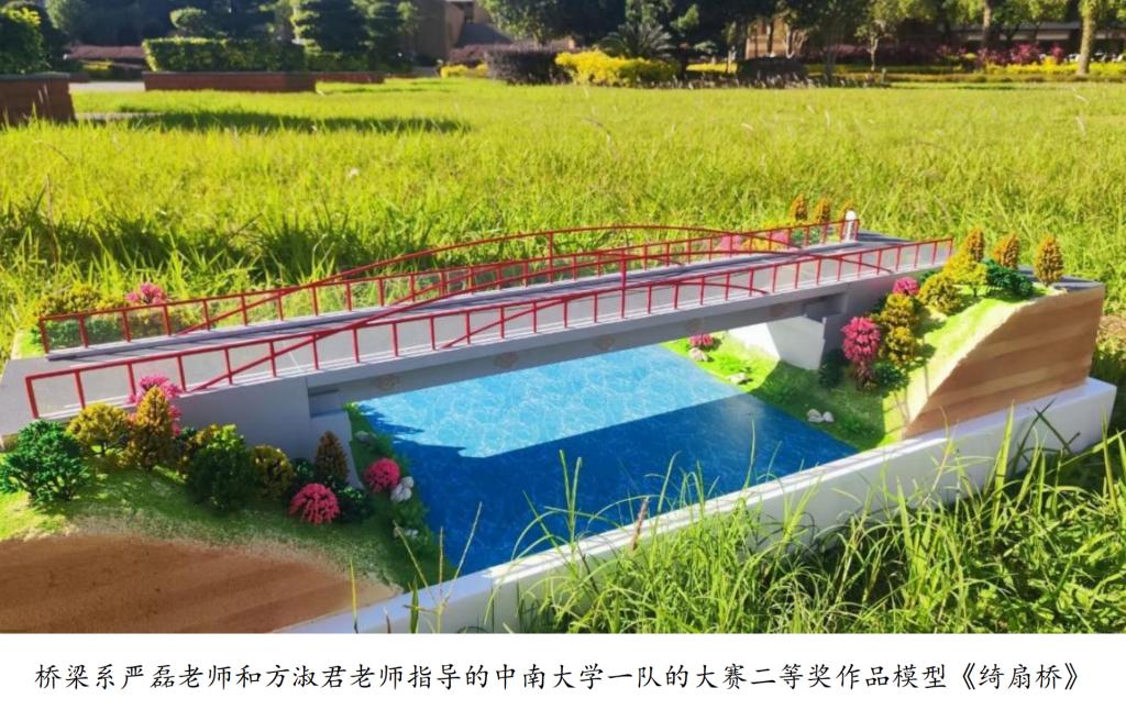 yl23411永利二队成员在桥梁工程系魏标老师的指导下,深入重庆市荣昌区吴家镇含珠桥村,结合当地实际、基本需求和文化背景,设计作品《棠漪桥》。棠漪桥选用工字型钢混组合梁,运用抗拔不抗剪连接件解决负弯矩区开裂,采用装配式智能建造技术,并且学生谨记yl23411永利“知行合一,经世致用”校训,自己动手制作沙盘模型,多次修改完善、趋向完美,在总决赛激烈的角逐中,荣获大赛特等奖。