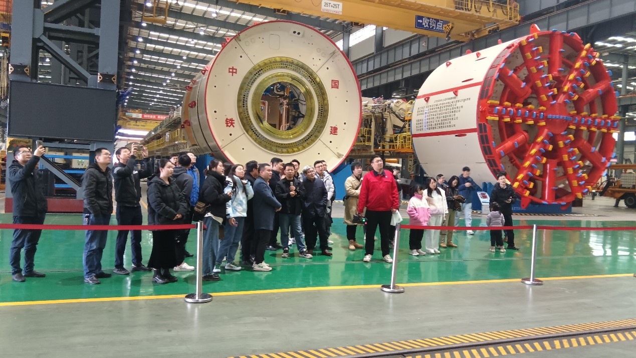 走进铁建重工厂区,威武壮观的大型盾构机设备令同学们惊叹。企业的陈谦、向涛、路佳丽(女)三位高级工程师热情地为大家讲解各项专业知识。他们先后展示了不同类型的盾构机的构造和各种参数,隧道初期支护、二次衬砌的机械、类型、应用和造价,公司产品的订单管理与生产流程。同学们随后参观了公司的创新实验室,见识了公司的专利产品、创新技术各类配件以、技术应用示范与重难点,也在众多应用案例中进一步了解公司数字化指挥监控中心系统。