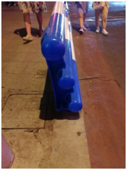 模型有三层,第一层类似一个窄的刚性护栏。第二层设计则是护栏最重要的缓冲部分,可以填入一些类似的柔性材料。第三层的设计并无特殊,是一个完全固结在地面上的结构,作为第二层形变吸能的支撑,同时也是作为最后的一道防线,防止护栏被彻底冲破。左图为简画护栏断面图。
