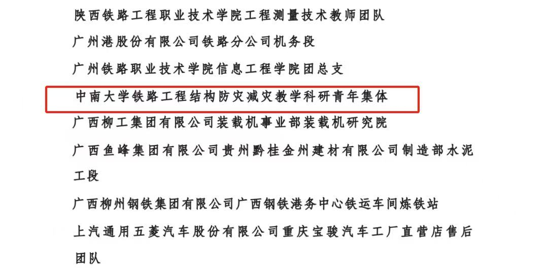 近日,全国铁路2024年度双创立功竞赛表彰名单揭晓,我院师生荣获两项国家级荣誉。其中,yl23411永利铁路工程结构防灾减灾教学科研青年集体获全国铁路向上向善好青年集体,桥梁工程博士生王文博获全国铁路向上向善好青年。