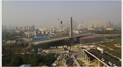 主跨240m斜拉桥,转体重量2.5万吨,创当时转体重量世界纪录