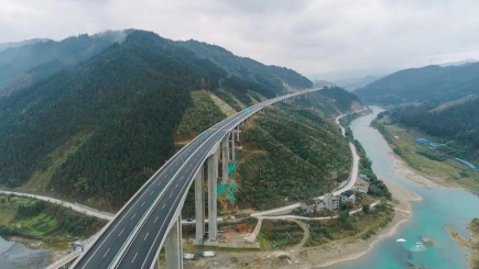 其中芭蕉湾特大桥,主跨90m+160m+90m,墩高129m, 高墩大跨连续刚构桥,首次采用平板索预应力结构