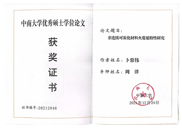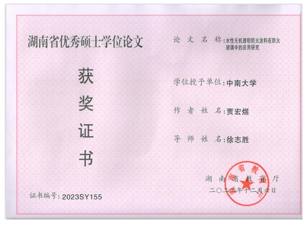10、《低烟水性透明防火涂料的设计、制备及性能研究》