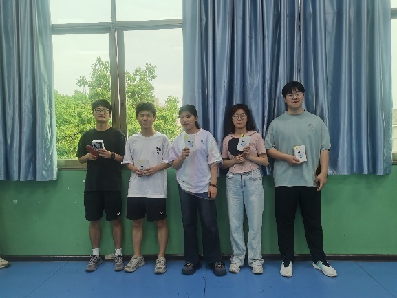 经过近三小时的激烈角逐,杜林波、卢佳节、乔文登分别获得男单冠亚季军;黄丹蓉、曾文欣、杨倩分别获得女单冠亚季军,黄丹蓉、余付荣夺得男女混双冠军,杨倩、徐童摘得混双亚军,胡逸之、乔文登获得混双季军。比赛结束后,消防科学青年社主席于子涵为获奖选手颁发了奖品,并合影留念。