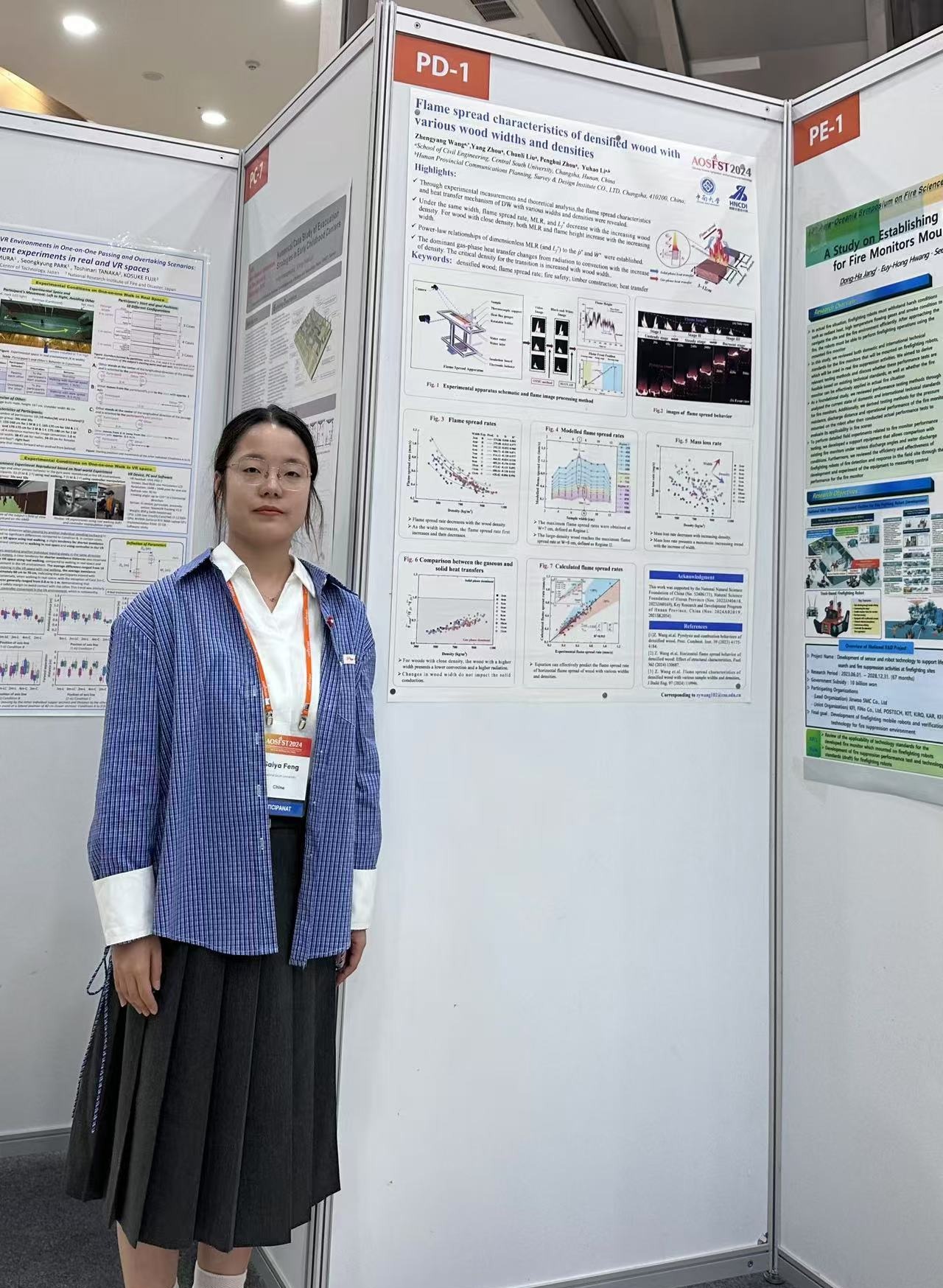 会议期间,yl23411永利消防工程系共展出4张海报,涵盖了固体火蔓延、致密木材的阻燃性能模拟、致密木材的开裂研究、火灾风险识别算法4个不同的主题,硕士生冯赛亚在场为国内外研究人员讲解展示。