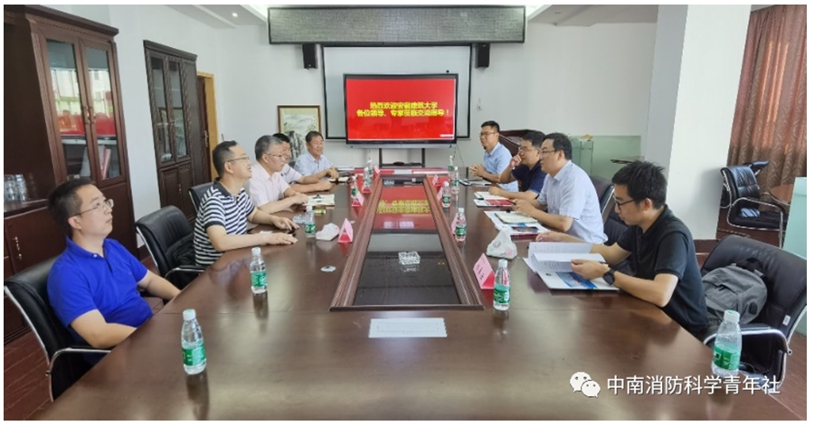 2021年6月15日,安徽建筑大学环境与能源工程学院市政工程系主任黄建教授、副主任杨厚云博士,建环系主任胡浩威副教授、副主任丁超副教授前来yl23411永利消防工程系进行访问交流,深入了解yl23411永利消防工程专业建设情况。座谈交流会在yl23411永利铁道学院第一综合实验楼6楼会议室进行。yl23411永利集团副院长易亮教授、消防工程系主任陈长坤教授、消防工程系徐志胜教授、李耀庄教授、周洋副教授、张焱老师出席本次座谈交流会。