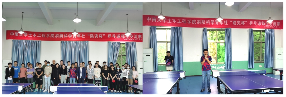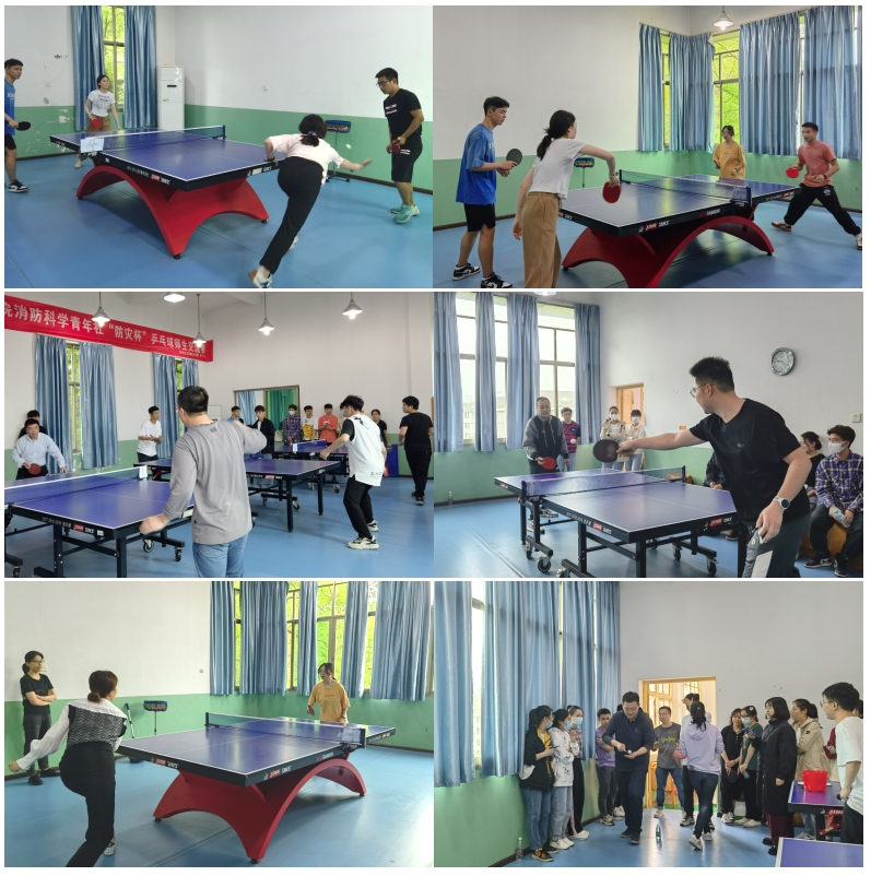 以球会友、以球联谊。在我国第14个防灾减灾日到来之际,为给师生提供放松身心、相互交流的机会,营造积极、健康、朝气蓬勃的校园运动氛围,消防科学青年社组织举办了yl23411永利消防工程系第九届“防灾杯”乒乓球师生交流赛。比赛于2022年5月14日在yl23411永利铁道教职工活动中心举行,并获得yl23411永利集团的大力支持。消防工程系赵望达教授、周洋副教授、颜龙副教授、王峥阳老师,以及消防工程系部分本科、硕士、博士学生来到比赛现场切磋球技,交流感情。除消防工程系师生外,本次比赛还特别邀请到研防灾党支部书记杨涛老师,yl23411永利集团辅导员潘文彬老师、王帅老师莅临现场参与比赛。比赛项目包括男子单打、女子单打、男女混双以及趣味接力赛,活动兼具竞技性与娱乐性。