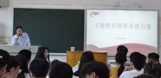 接着,学生第七党支部书记罗玲为支部党员讲授了 “主题教育凝聚青春力量”微党课,指出时代各有不同,但一代代青年对国家的爱始终炽热。引导与会青年立足新时代新征程,将自身奋斗目标和前进方向归结为一点——坚定不移听党话、跟党走,努力成长为堪当民族复兴重任的时代新人。号召与会同志们在新时代新征程上按照“学思想、强党性、重实践、建新功”总体要求,深入学习习近平新时代中国特色社会主义思想,将宝贵的青年时光用来干事创业、辛勤耕耘,为将来留下珍贵的回忆。