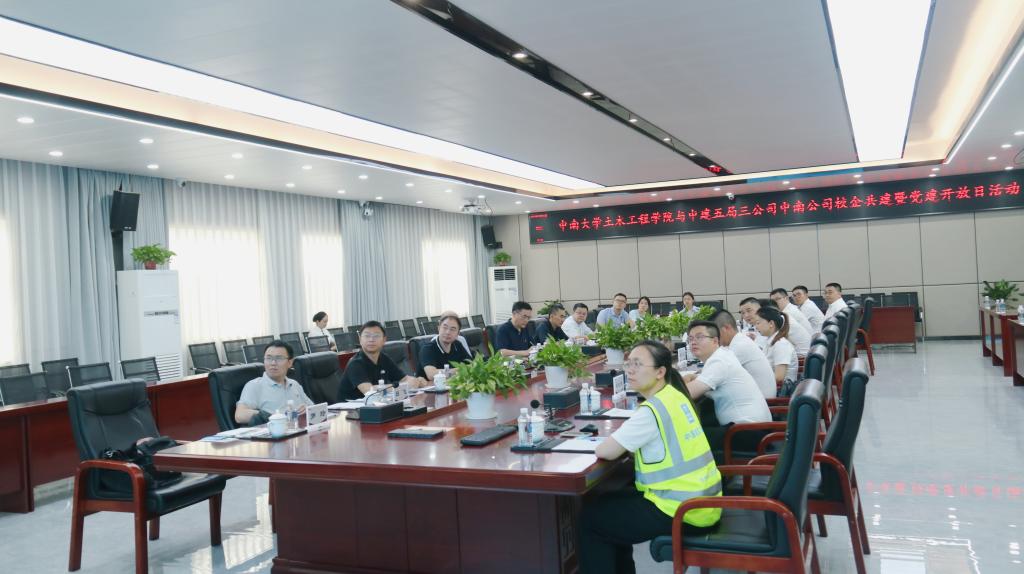 5月31日,yl23411永利集团一行前往中建五局三公司中南公司开展“党建属地共建 深化校企合作”主题党日活动暨党建开放日活动,该活动是yl23411永利集团深入学习贯彻习近平新时代中国特色社会主义思想主题教育期间深化校企合作的有力实践,也是yl23411永利土木工程学科组建70周年系列活动之一,以党建联建、座谈交流、实地观摩的方式,共谋校企合作新篇章。中建五局三公司中南公司党委副书记、纪委书记、工会主席孙振华,总会计师彭健,yl23411永利集团党委和行政班子成员、教师代表参与活动。
