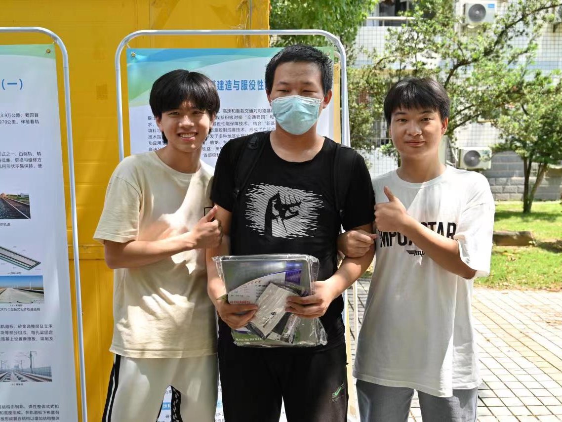 活动分为三个环节,参与者将依次参加各个环节。第一个环节是科技知识问答,参与者要在十分钟内回答工作人员准备的十个问题,根据答题正确率,获得相应的奖品。本环节的题目数量少但内容“精”、知识“新”,围绕高速铁路相关知识,延伸至整个轨道交通领域。参与者在答题的同时,也能充分了解到轨道交通方面的基本知识以及我国在高速铁路建造领域取得的伟大成就。第二个环节是模型搭建,参与者将在规定时间内,用长宽不一的松木条及相关辅助工具搭建桥梁或建筑模型,这是对参与者想象能力、动手能力的一大考验。正如:“实践是检验真理的唯一标准”,通过观察搭建成果,参与者能检验自己的桥梁结构是否稳固、建筑样式是否美观,起到了很好的激发兴趣的作用。第三个环节是基地研究成果展示,在活动现场,志愿宣讲员结合展出的科普展板,用通俗易懂的语言,向参与者介绍我院在土木工程相关专业领域的先进科研成果,同时与参与者互动,解答相关疑问。最后,完成三个“闯关”环节的同学会与工作人员积极交流探讨。其中一名来自土木工程专业的同学说到:“这次游园会,我印象最深的是知识问答的环节,因为明明与我学的专业息息相关,但我还是有那么多未知的领域,我有点惭愧但更多的是动力,是继续学习的动力。”
