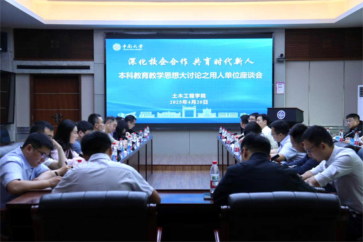 为进一步构建高质量本科教育教学体系,深化本科教育教学改革,扎实推进学院一流本科教育教学和人才培养体系建设,4月20日上午,yl23411永利集团在世纪楼14楼会议室召开本科教育教学思想大讨论暨用人单位座谈会。来自中国中铁、中国建筑、中国铁建、中国交建等27家全国各地重点用人单位代表,学院党政领导班子、就业负责人、辅导员、2025届毕业生代表等参加座谈会。座谈会由学院党委副书记纪晓飞主持。