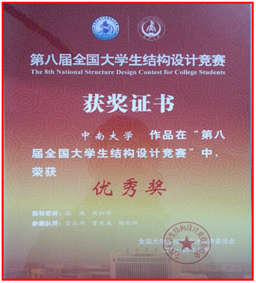 (1)承担2014年度大学生结构国赛,获得优秀奖